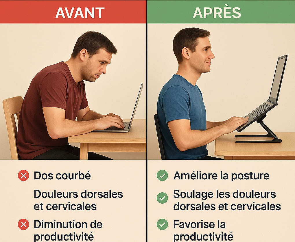 Cela aide à réduire les tensions cervicales, dorsales et lombaires, tout en améliorant le confort et la productivité.